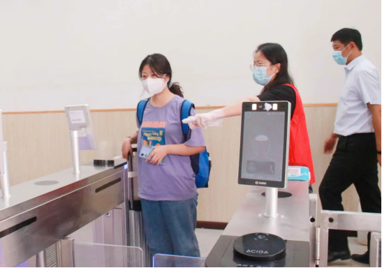 排队、扫码、人脸识别、智能测温、身份验证一气呵成、秩序井然。结束了一夏,我们在此重逢。