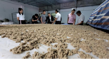 在1500平方米的艾草初级加工车间,团队一行参观了生产艾绒的机器及设备。药理专家邹静湘了解了加工艾草的各个环节,并与柞水县村支书交流了影响艾草产品质量的因素。