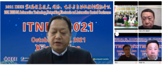 由IEEE(Institute of Electrical and Electronics Engineers)即美国电气和电子工程师协会、重庆环球联合科学技术研究院主办,西安培华学院承办的IEEE第5届信息技术、网络、电子与自动化控制国际会议(ITNEC 2021)在10月16日举办。受疫情影响,本次会议采用线上、线下联合举办方式。会议主题为信息技术、大数据与人工智能,探讨了“电子信息技术产业”发展带来的机遇和挑战。学校国际交流中心主任王鹏、智能科学与信息工程学院院长程国建、智能科学与信息工程学院行政副院长南兵、智能科学与信息工程学院科研副院长刘小虎等学校师生代表听取了会议主题报告。