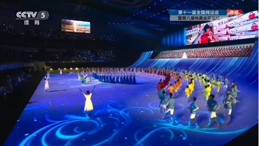 在开幕式的舞台上,学校286名学生演员充满活力、精神焕发、积极向上,为全国观众奉献了一场精彩的演出: