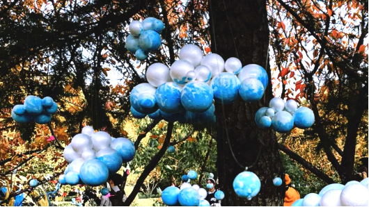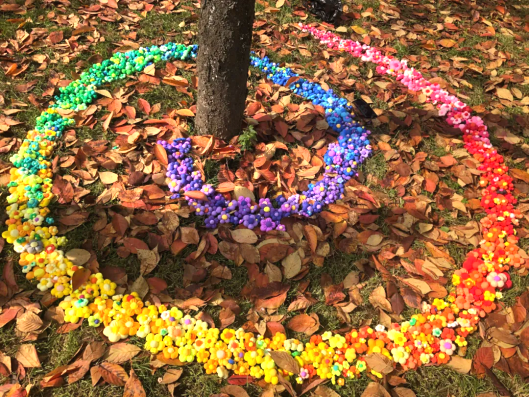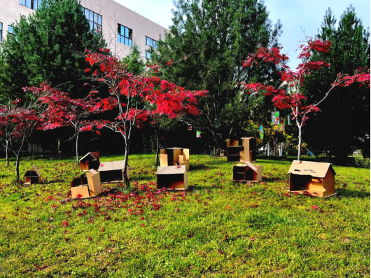 老师介绍,这次实物创作是临时性展览,依托现有环境进行设计;学生称,大学4年第一次做大型公共艺术作品,能得到同学们喜爱非常开心。