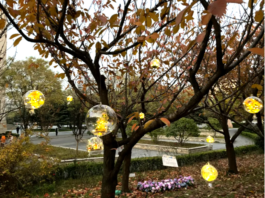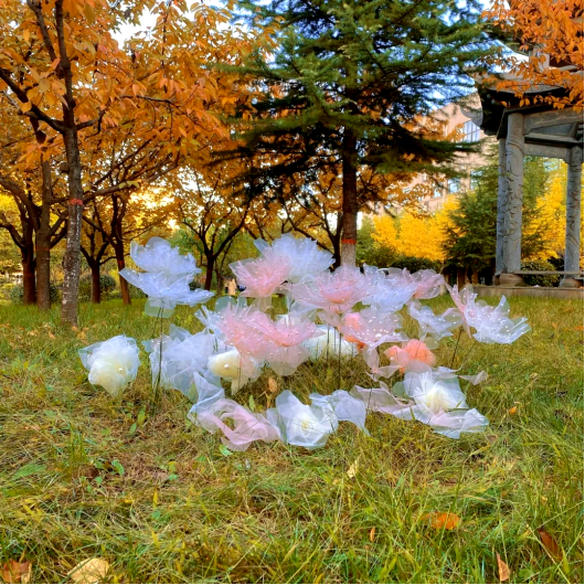 他们把这些作品与校园秋景相结合,把所学知识应用到现实中,提升了自身的实践能力,也为秋日的校园增添了一抹浪漫的气息。