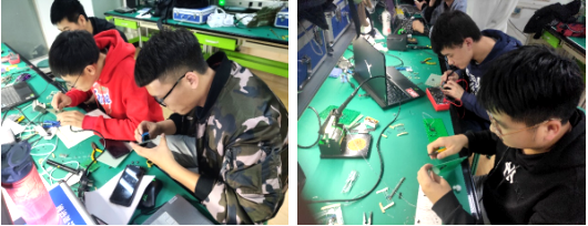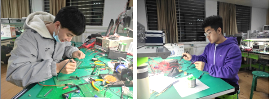 比赛过程中,实验室灯火通明,选手们紧张调试
