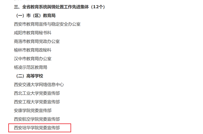 近日,陕西省教育厅发布了《关于对拟表彰2021年度全省教育系统信息工作、网民留言办理工作先进集体和信息工作先进工作者、优秀信息员及省教育厅网站好新闻名单进行公示的公告》,对信息工作先进集体39个、网民留言办理工作先进集体9个、信息工作先进工作者42名、优秀信息员76名、省教育厅网站好新闻26条予以表彰。