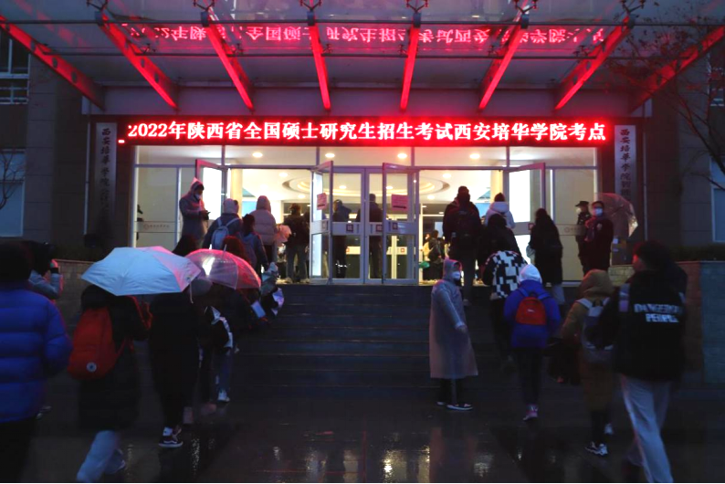 12月25日,是全国研究生考试的第一天,早晨5点,西安培华学院考点已灯火通明,考试的各项准备工作已准备就绪。早晨6点,陆续有考生持核酸检测等各类证件进入考区,考区内外,每间隔8米的距离就设有志愿服务岗,为考生提供咨询服务。
