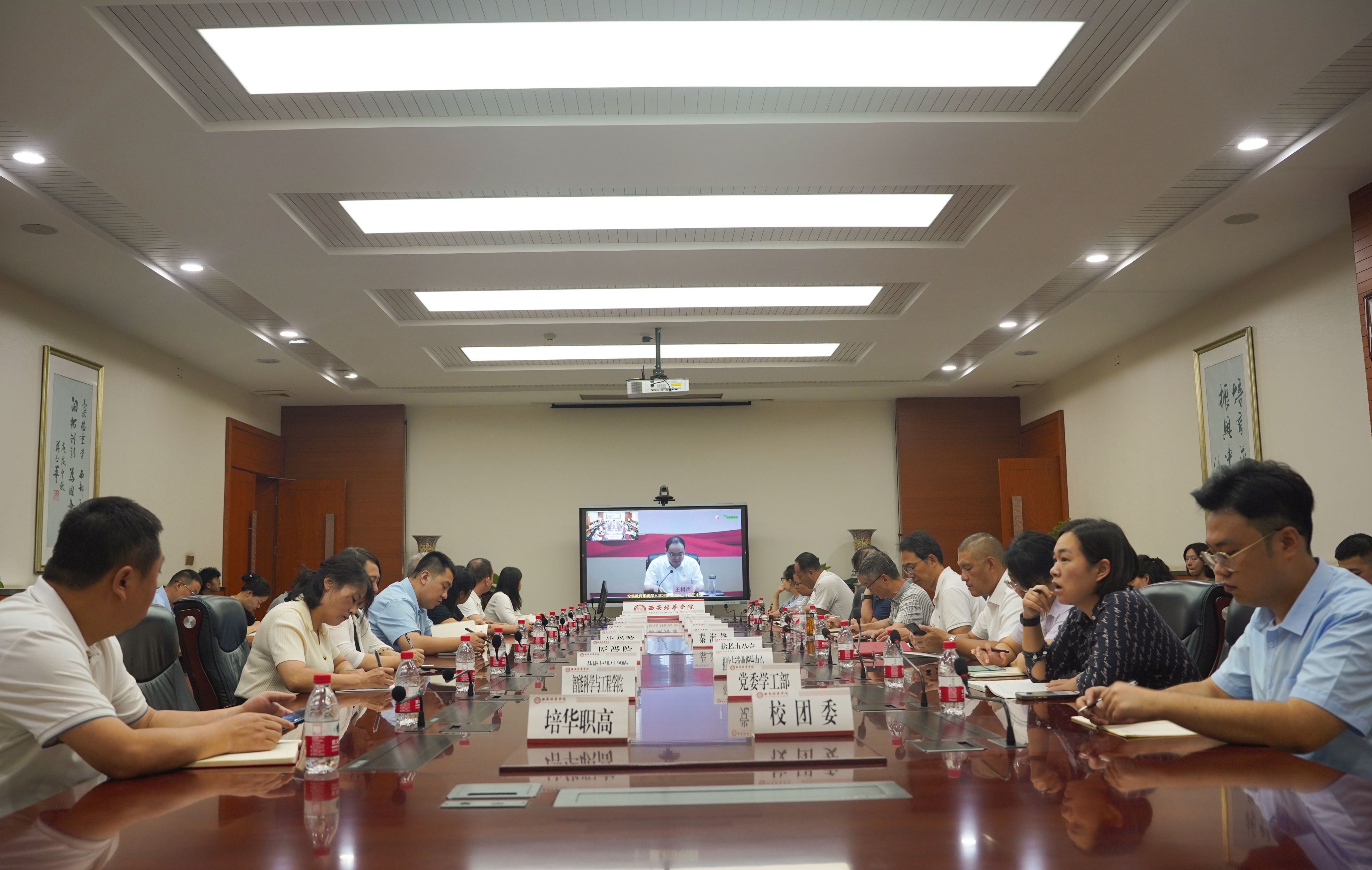 视频会议结束后,党委书记刘锋主持召开学习贯彻党的二十届三中全会精神工作推进会。他结合省委宣讲团成员、省委教育工委副书记、省教育厅厅长王树声同志主题报告的主要内容,就学校如何学习贯彻落实党的二十届三中全会精神做了安排部署。向与会同志提出了四点要求:一是确保会议精神的传达,要求与会领导干部将本次视频会议的核心内容准确无误地传达给本单位成员,深入理解并掌握会议精神;二是激发学习热情,要求学校各单位积极组织学习党的二十届三中全会的精神,在学校内掀起学习热潮;三是形成强劲工作动力,用党的二十届三中全会最新成果指导实际工作,推动教育教学、人才培养等核心工作提水平、上台阶、有突破;四是充分做好开学准备工作,开学在即,要做好安全稳定、后勤保障、开学准备等工作,确保新学期开学顺利进行。