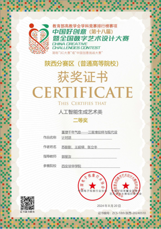 近日,第18届中国好创意暨全国数字艺术设计大赛评审结果公布。传媒与设计学院师生团队成绩喜人,共计获得奖项15项,其中国赛二等奖2项,国赛三等奖2项,省赛一等奖1项,省赛二等奖4项,省赛三等奖6项。