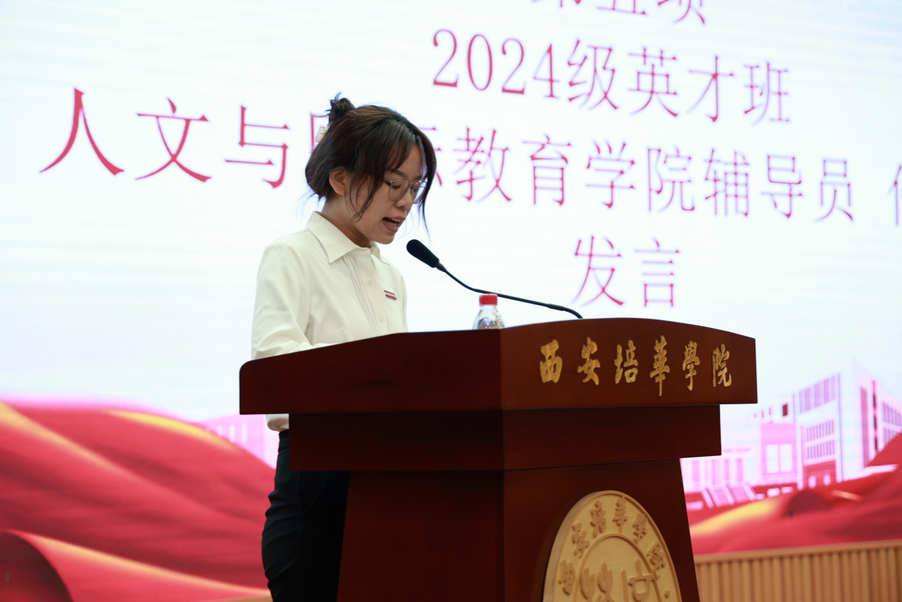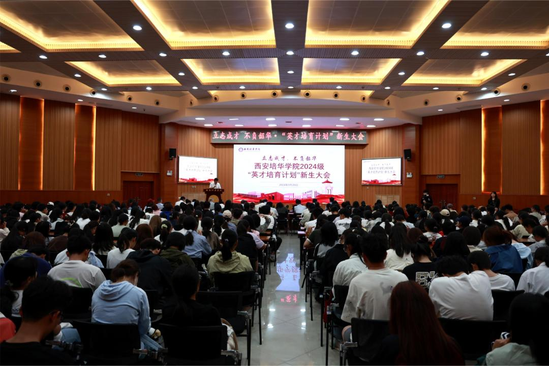 9月20日,立志成才,不负韶华——西安培华学院2024级“英才培育计划”新生大会在明德楼四楼报告厅顺利召开。西安培华学院常务副校长胡俊生,教务管理中心主任铁卫,国际交流中心主任王鹏,学生服务中心主任兼党委学生工作部部长权勇太,教务管理中心副主任刘改琳,各二级学院教学副院长及党委书记,各二级学院英才培育计划教学干事及英才培育计划专任辅导员,2024级“英才培育计划”教师代表及2024级“英才培育计划”全体学生出席会议。会议由校长助理鲍伟主持。