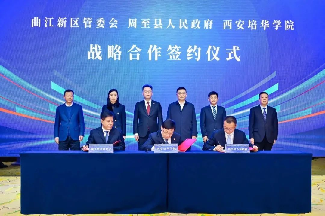在今年3月,曲江新区、周至县与西安培华学院签署合作协议,三方将在楼观生态文化旅游度假区内,合作共建西安楼观文教旅融合产业园项目。此次战略合作旨在共同打造“西安楼观文教旅融合产业园”,以推动楼观区域转型发展,促进文教旅融合发展,学校入驻该园区,将为园区注入新的生机与动力。