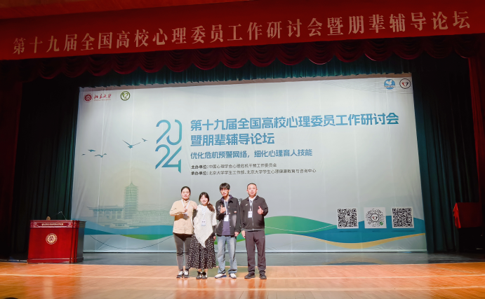 10月16日至18日,第十九届全国高校心理委员工作研讨会暨朋辈辅导论坛在北京大学举行。来自国内外各高校专家学者、大学生心理健康教育中心专职教师、心理委员等参与了本次会议。我校会计与金融学院党委书记兼行政副院长刘斌、学生潜能发展中心专职教师王旭、传媒与设计学院心理委员代表殷琦、智能科学与工程学院心理委员代表党奕琛参加了本次大会。