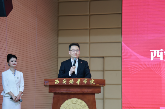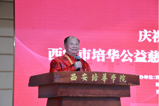 西安市培华公益慈善基金会监事长姜波致辞,他表示,西安培华学院从建校开始就具有公益基因,招收底层妇女;在近百年的发展中,学校更是坚持公益性办学理念,以善心善举培育青年学生,他希望新时期的培华青年能继续传承公益理念,践行公益行为,做一个有益于社会的人。