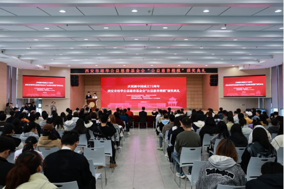 为发掘和鼓励在社会服务、老龄事业、公益传播等社会工作领域做出杰出贡献的人物,弘扬公益慈善精神,激发全民向善的热情,11月8日,由西安市培华公益慈善基金会、陕西省杂文学会、陕西省红色文化研究院、西安铁路局文学研究会、西安培华学院关心下一代工作委员会联合主办的庆祝新中国成立75周年“公益慈善楷模”评选表彰活动在学校举行。