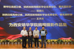 此外,在新闻发布会的进行过程中还举行了捐赠书籍的仪式,新华社高级记者、陕西省新闻摄影学会名誉会长、著名摄影家范德元先生,陕西日报高级记者、陕西省新闻摄影学会名誉会长、著名摄影家王天育以及西安电影制片厂研究员、陕西省文史馆研究员、著名摄影家柏雨果先生为西安培华学院捐赠摄影作品集。