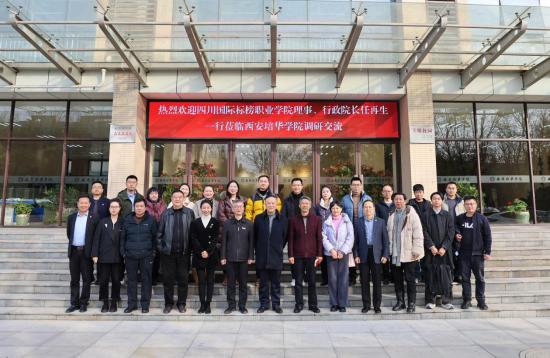 12月6日,四川国际标榜职业学院理事、行政院长任再生,党委副书记孙启平等一行18人来校开展调研交流活动。西安培华学院党委书记刘锋,常务副校长胡俊生,党委副书记、副校长姚文静,监事会主席徐国富等陪同调研。