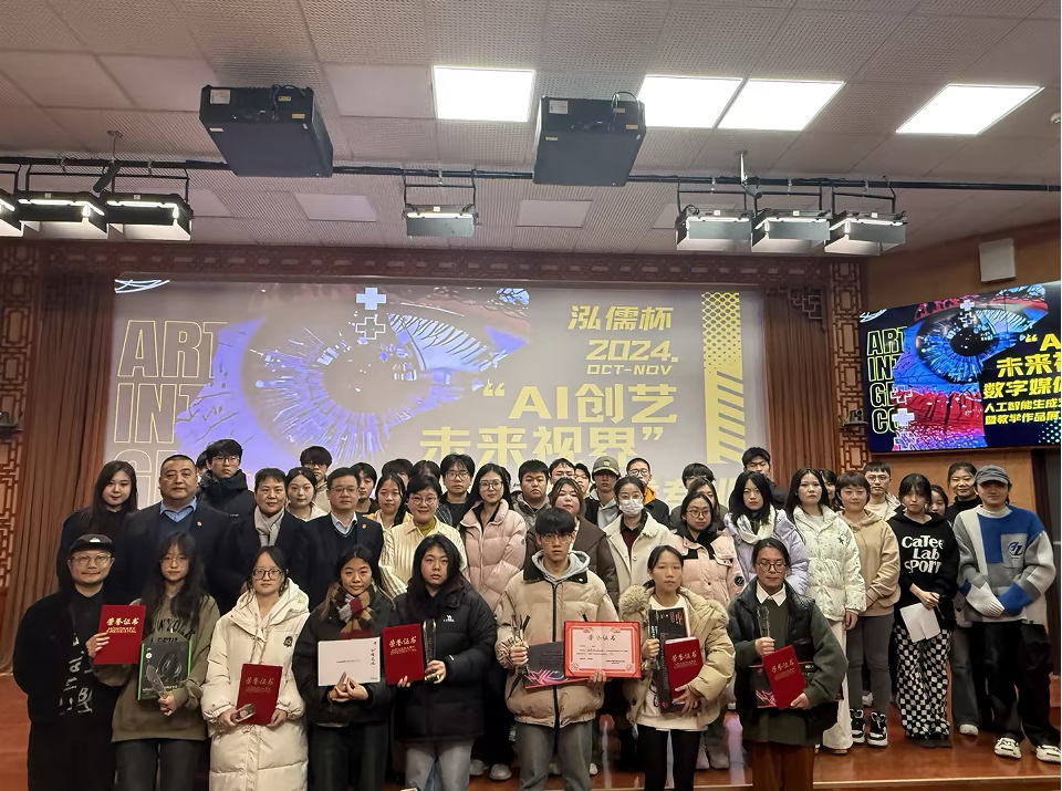12月17日,西安培华学院传媒与设计学院数字媒体艺术专业在国学大讲堂成功举办了“泓儒杯”AIGC创作大赛颁奖典礼及作品展演。陕西泓儒文盛网络科技有限公司人力资源官吴宇芮、首席运营官刘德丽、微短剧项目运营官王佳慧,传媒与设计学院常务副院长徐莹、党委书记兼行政副院长王飞、副院长邵璐、党委副书记南斌红、数字媒体艺术专业负责人王东等师生代表参加。活动由数字媒体艺术专业教研室主任孙碧野主持。