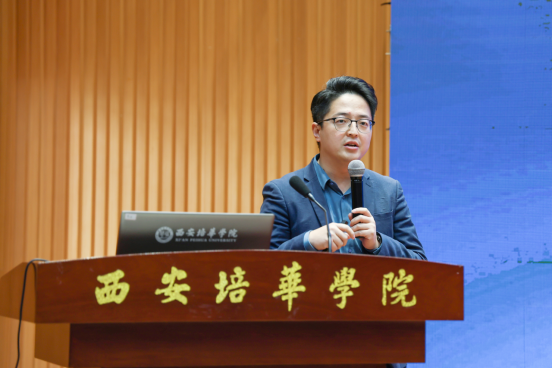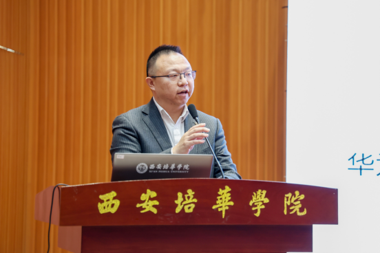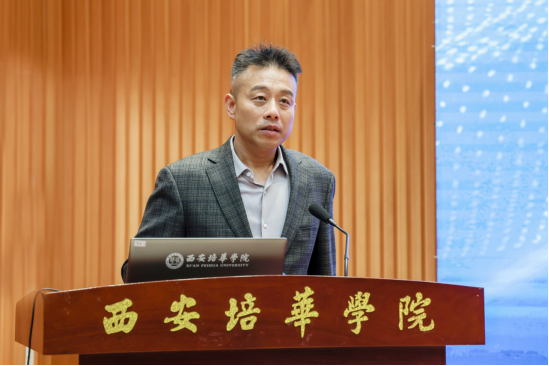 西安培华学院理事长姜波致欢迎词,他介绍了学校的发展历史,表示学校高度重视职业教育和实用性人才的培养,始终在创新中不断前行,近年来培华深度强化校企合作,目前合作企业超过200家,建立9个产业学院,他希望在数字化转型时代下,与政府、企业、同行携手并肩,培养更多适应未来的个性化数据人才。