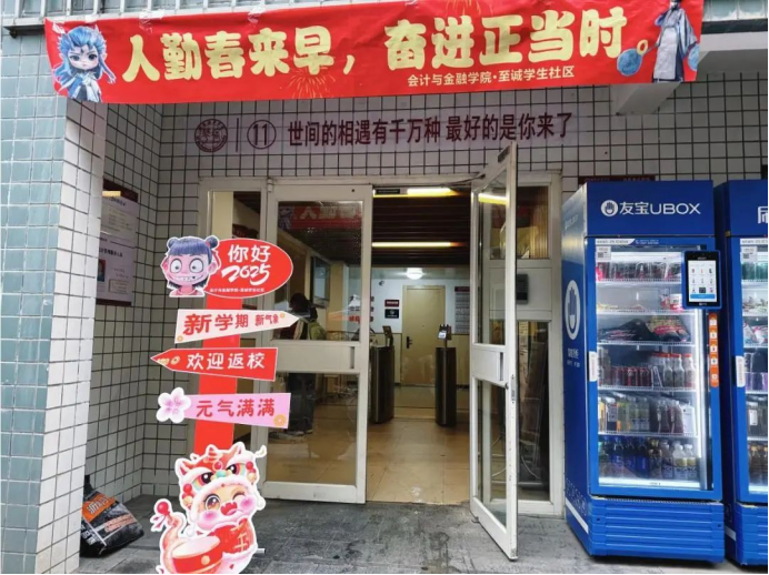 ——社区精心营造开学氛围,暖心服务倍受赞赏。开学前夕,学校新闻中心、党委学工部、各教学单位在校园内布置了多处迎新标语,在校园主要路段悬挂欢迎条幅,制作了特色鲜明的“我们开学啦”“开学快乐”迎新生拱门,“新学期,新征程,愿所有美好如期而至”“学业一路繁花,梦想照进现实”......一句句热情祝福寄语温暖心间、格外引人注目,为迎接学生返校营造了浓厚的氛围。通过一系列暖心活动的举办,让同学们切身感受到回“家”的温暖,也为“一站式”学生社区增添浓厚的春日活力与温馨氛围,拉近了同学们之间的距离,收获了欢乐与温暖。