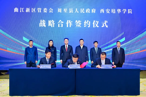 2024年3月,西安培华学院与曲江新区管委会、周至县人民政府举行战略合作签约仪式