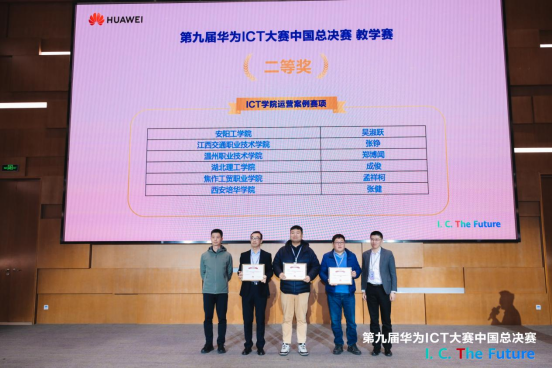 近日,第九届华为ICT大赛中国总决赛在华为全球培训中心(杭州)圆满落幕。在这场备受瞩目的赛事中,西安培华学院智能科学与工程学院凭借卓越的教学实力和创新精神,在教师赛中取得了优异成绩,获华为ICT大赛教学赛优秀教材奖和ICT学院运营案例二等奖。