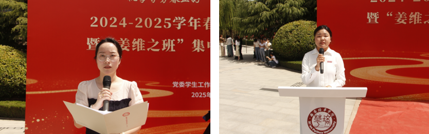 启动仪式中,党委学工部老师邱含雪、校团委老师罗娜分别宣读了《关于组织开展2024-2025学年春季学期学风建设月工作的通知》《关于开展2024-2025学年“姜维之班”集中创建工作的通知》。