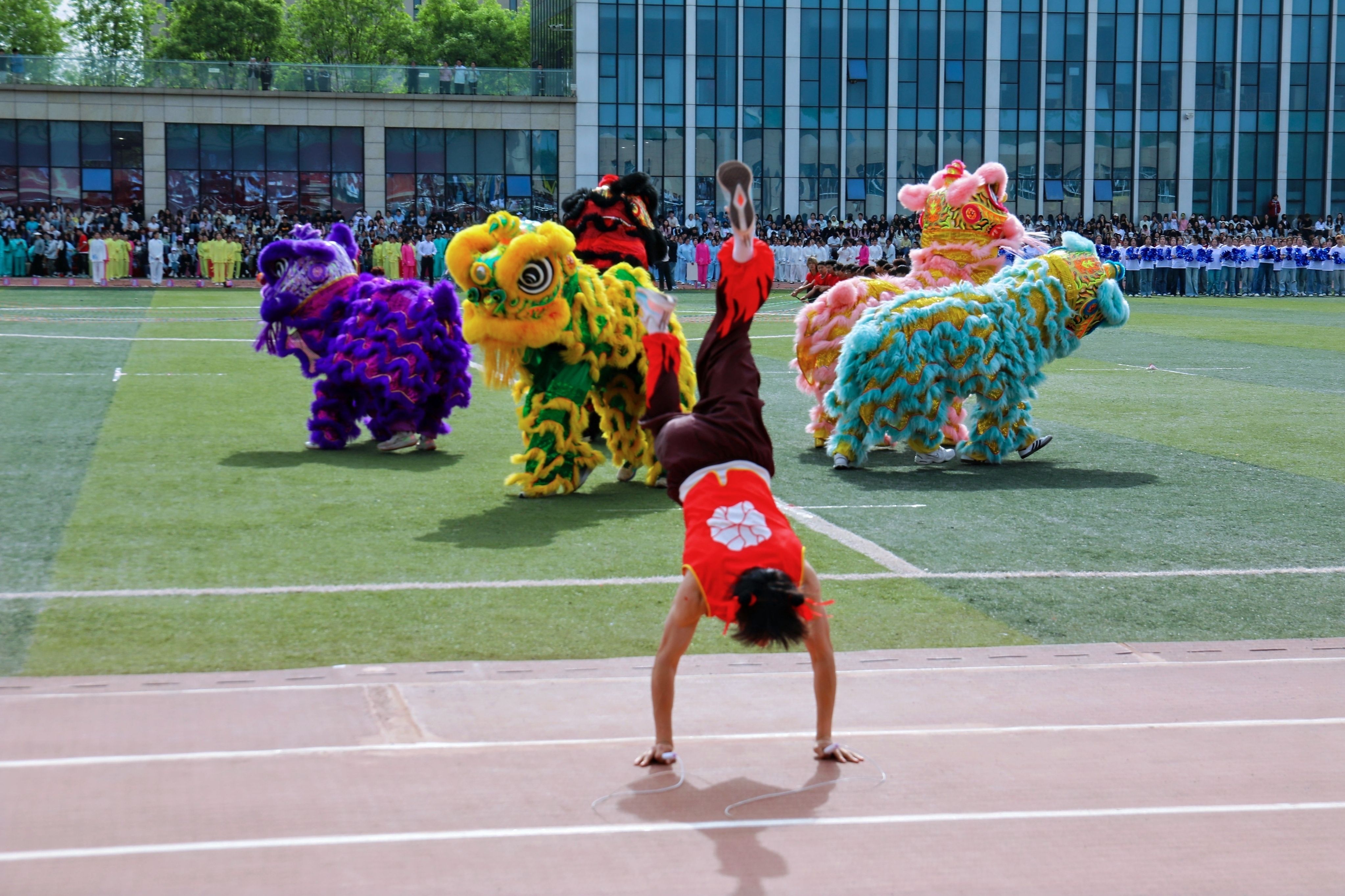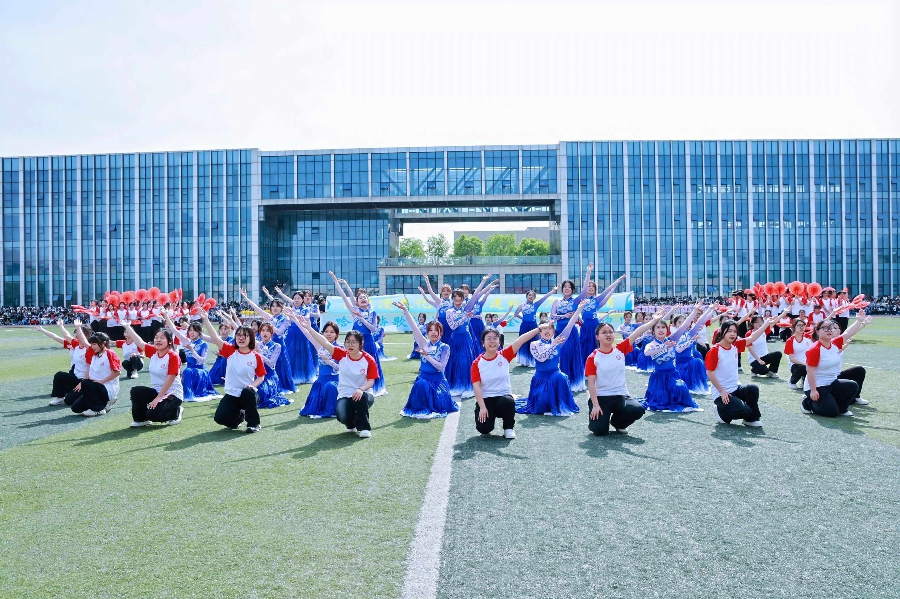 教职工方队化身粉色浪潮,144双手共绘樱花海,老师们秒变追风舞者,团队协作默契满分,欢笑与汗水交织成最萌年龄差表演。