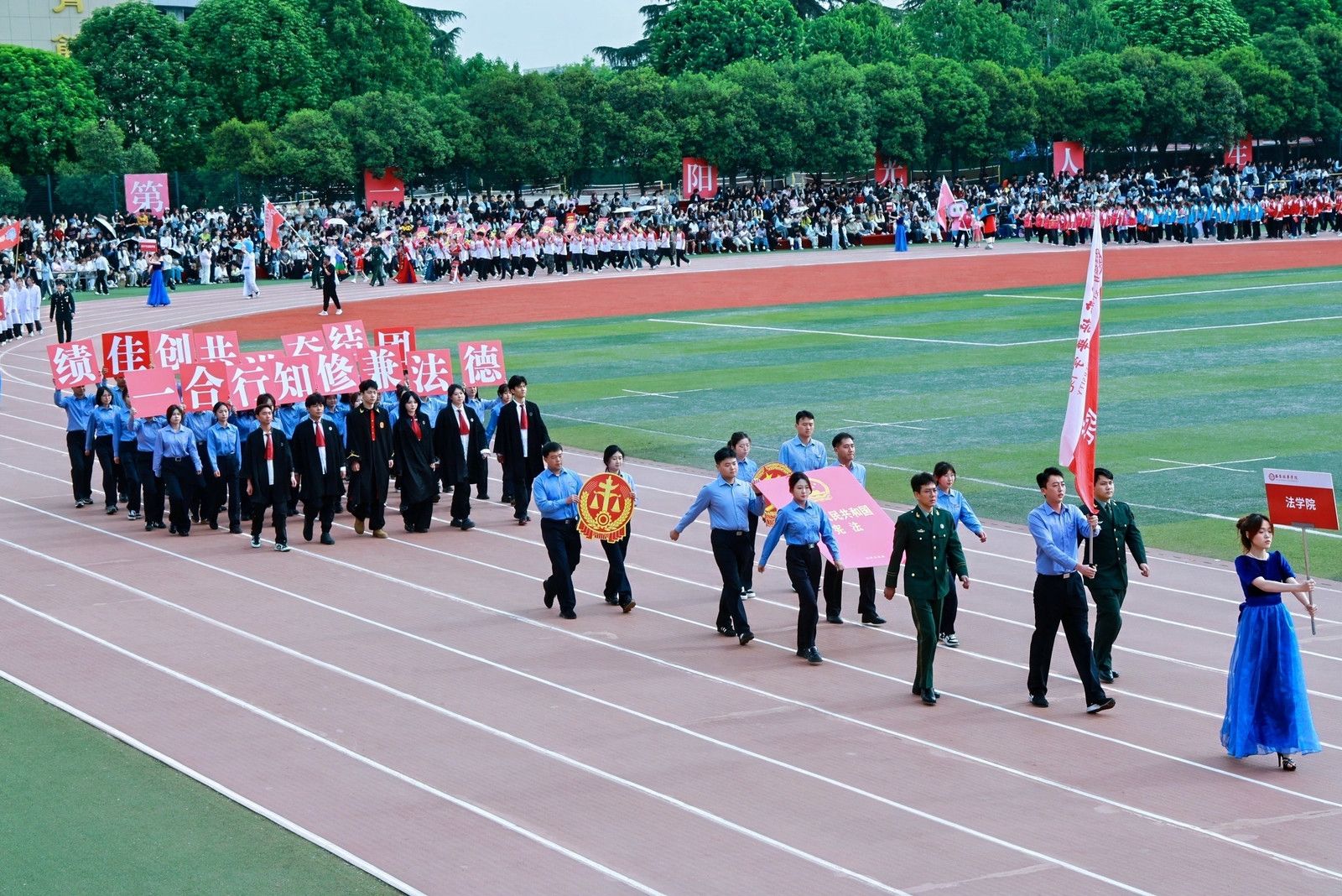 各学院方阵交织出青春长卷,人文与国际教育学院百名奖学金获得者,以书卷化作逐梦羽翼,智能科学与工程学院学子用机械臂叩响未来强音,法学院学子步履铿锵丈量正义维度,医学院学子白袍翻涌如杏林春潮,他们绘就培华最燃青春图鉴!