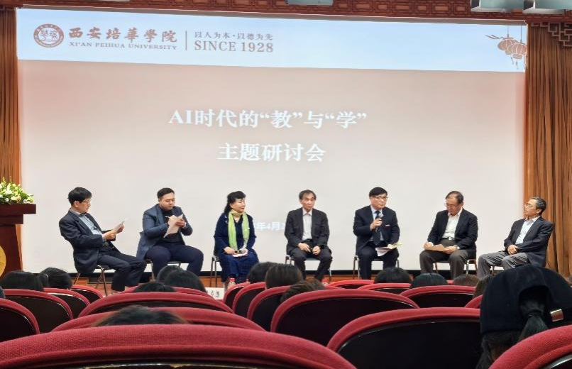 4月28日,西安培华学院国际交流中心、传媒与设计学院等单位举办“向76m外的探索——与AI时代的竞争”学术讲座,特邀早稻田大学文学学术院杨达教授、森山卓郎教授分享AI技术在语言教育领域的突破性成果,吸引中日韩三国专家及师生代表100余人参与。