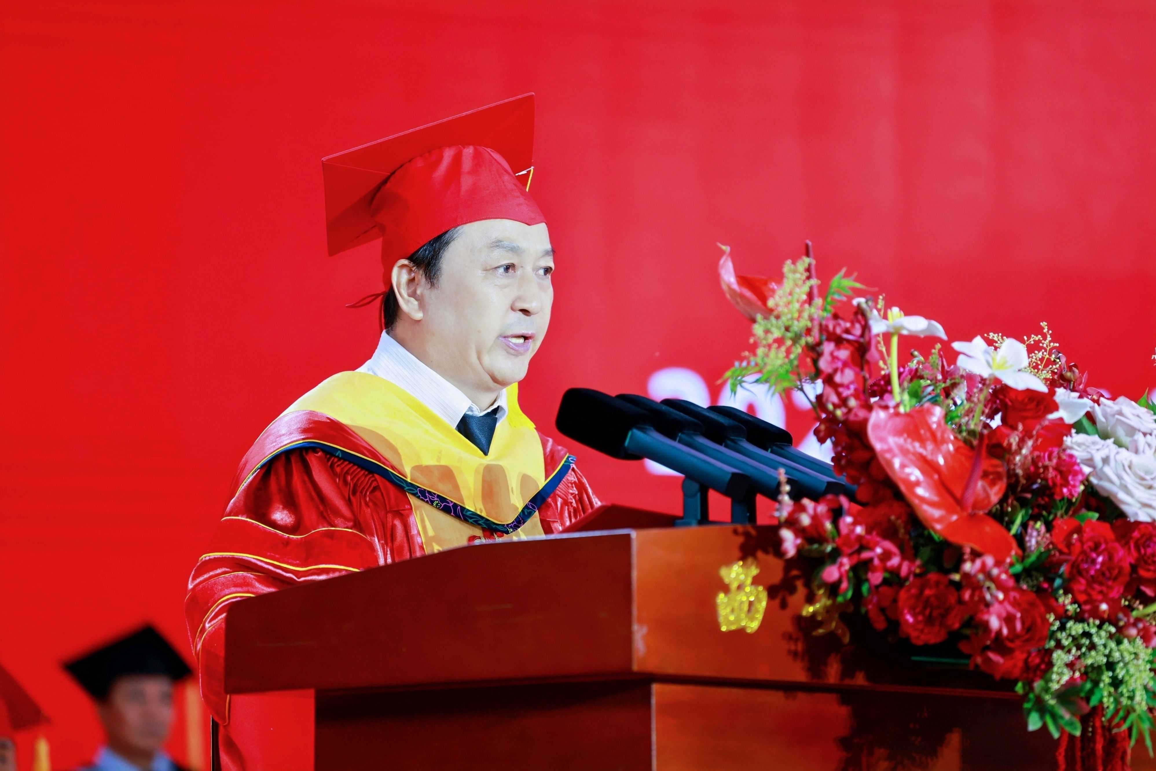 作为培华的大家长,姜波理事长发表了情真意切、立意高远的讲话,为毕业生们上了最后一堂课。他代表学校向圆满完成学业的全体2025届毕业生表示祝贺,向全体教职员工致以敬意,向家长朋友们表示感谢。他以20世纪50年代老校友们扎根基层的成长经历为例,鼓励毕业生们要到基层去、到祖国需要的地方去。他向毕业生们提出四点希望:一是品德为先,懂得珍惜。感恩父母养育,关爱家中长辈,做一个有温度、有责任感的人。二是终身学习,勇于创新。不能满足于现有知识,要紧跟国家与世界发展趋势,持续提升专业能力,勇于突破,成为复合型人才。三是重视健康,保持活力。身体是幸福的基础,在快节奏时代务必珍视身心健康,保持积极乐观。四是脚踏实地,从零开始。放下过往成绩,以归零心态和坚定信念面对未来,在坚持中历练成长。在讲话的最后,他邀请毕业生们于2028年重返母校,一起见证学校的百年华诞。