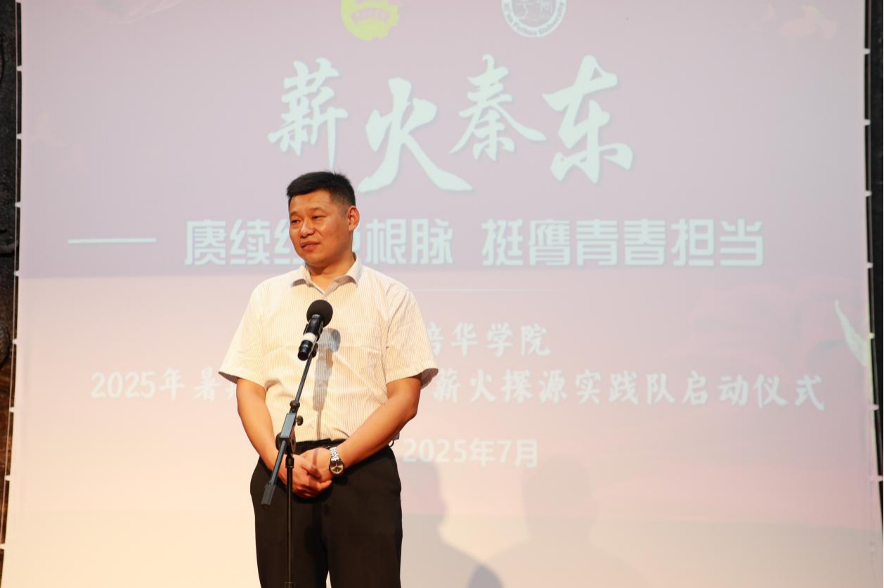 寇军强宣布2025年西安培华学院“薪火探源”实践队“三下乡”活动正式启程