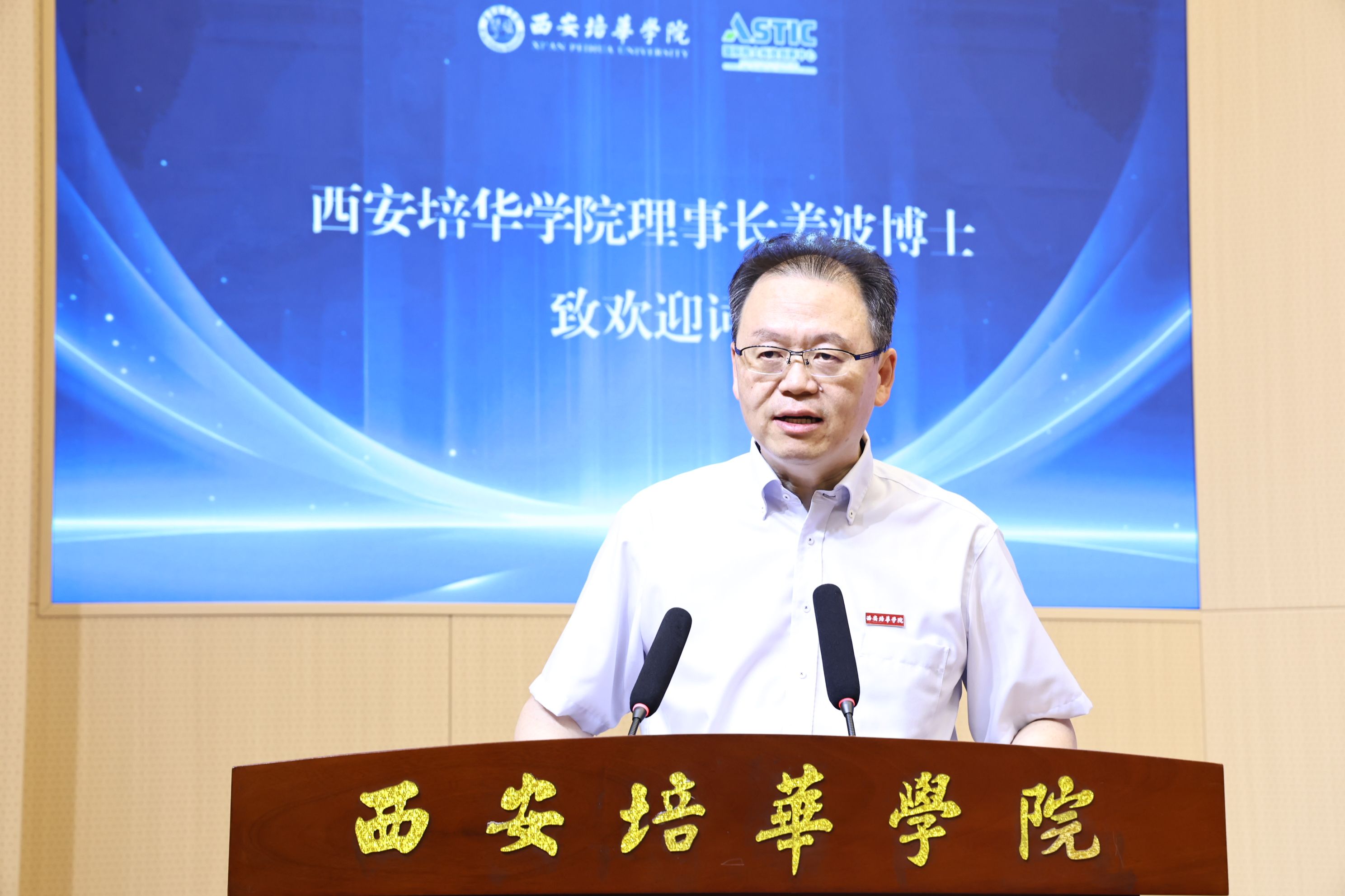 姜波理事长代表学校对于建华院士受聘为我校名誉校长表示热烈欢迎和衷心感谢。他表示,于建华院士深厚的学术积淀、广阔的国际化的视野和丰富的科技资源与西安培华学院的发展战略高度契合。于建华院士的加盟,不仅进一步壮大了学校的国际化高层次人才队伍,更彰显了学校在人才培养和科技创新方面的雄厚实力,必将推动学校产学研用深度融合人才培养新模式,为学校高质量发展注入持久动能。