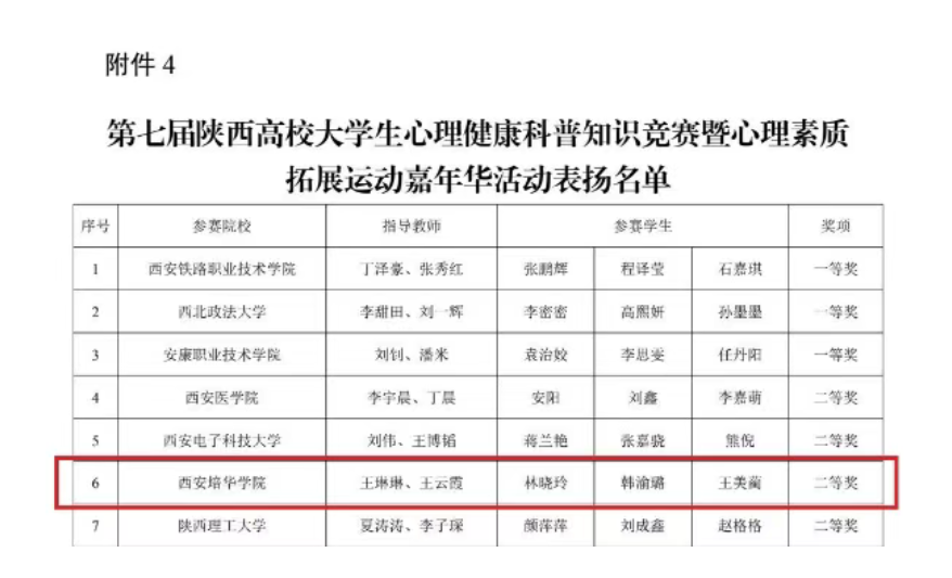 十年耕耘,初心如磐。在刚刚揭晓的第十届陕西高校“阳光护航”心理育人宣传季实践活动成果中,西安培华学院的老师们以扎实的专业积淀与温暖的育人实践收获省级荣誉5项,其中一等奖1项,二等奖4项。这份沉甸甸的认可不仅是对老师们默默付出的肯定,更是学校长期深耕心理育人沃土、探索形成特色“培华范式”的生动注脚。