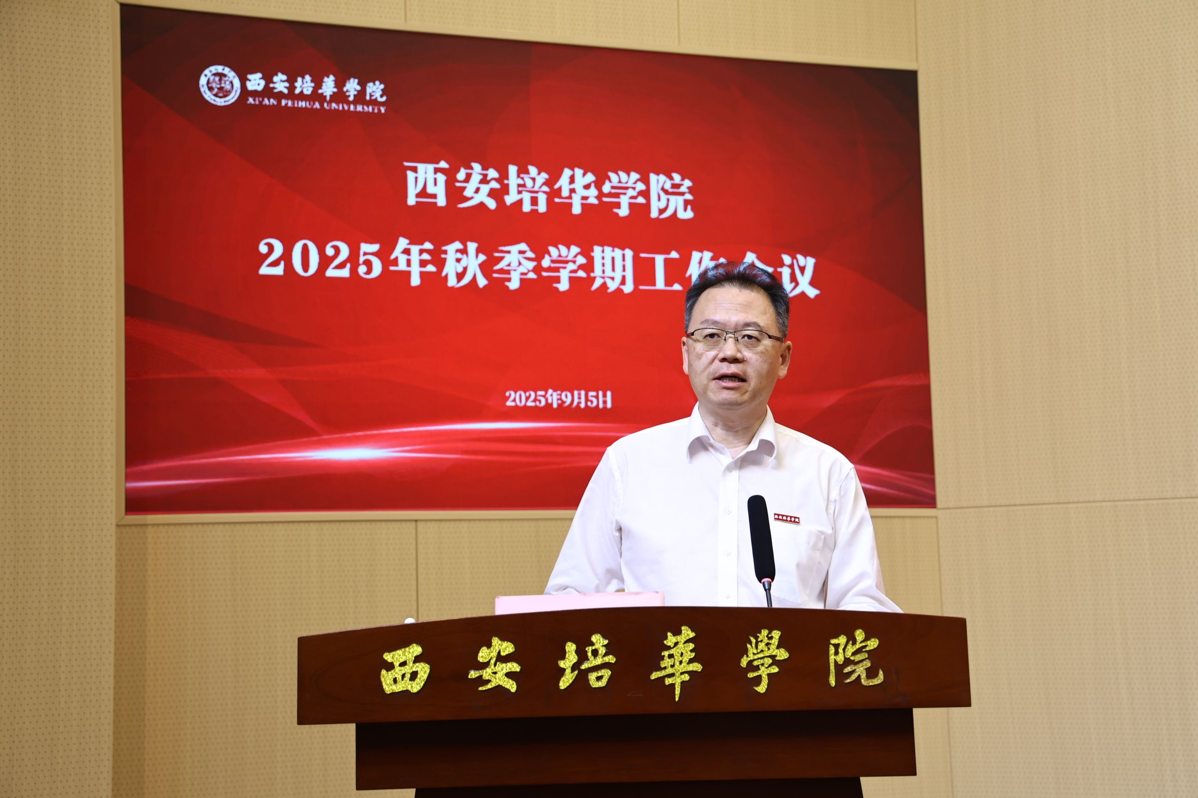 9月5日,西安培华学院召开2025年秋季学期工作会议,部署安排新学期重点工作,明确任务,凝聚合力,推进学校高质量发展。学校全体校级领导、中层干部、教职工代表等170余人参加会议。本次会议由工作部署会和专题辅导报告两个环节组成,党委书记刘锋主持会议。