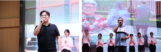 巨梦、张雨声两位老师热情洋溢的开场,为本次生日会拉开序幕。。姜波理事长上台致辞。他向全体生日教职工送上真挚的祝福,向出席生日会的校领导表示感谢,并深情寄语:“愿我们学校的事业如每一个家庭般温暖而稳健地发展。也衷心祝愿各位老师身体健康、心情愉悦,愿学校在未来征程中步履不停、越来越好,成为每一位教职员工身后最坚实的依靠。”