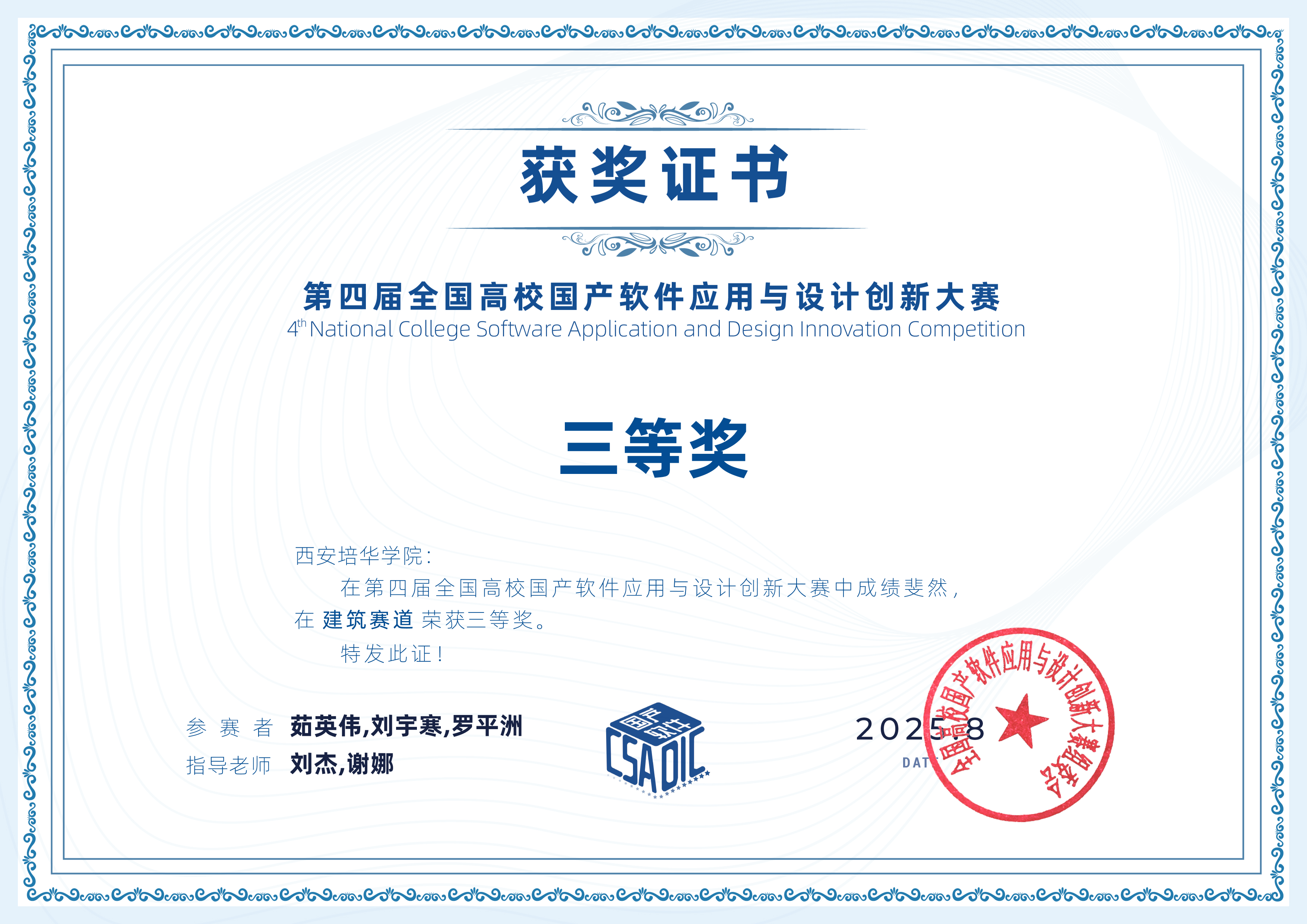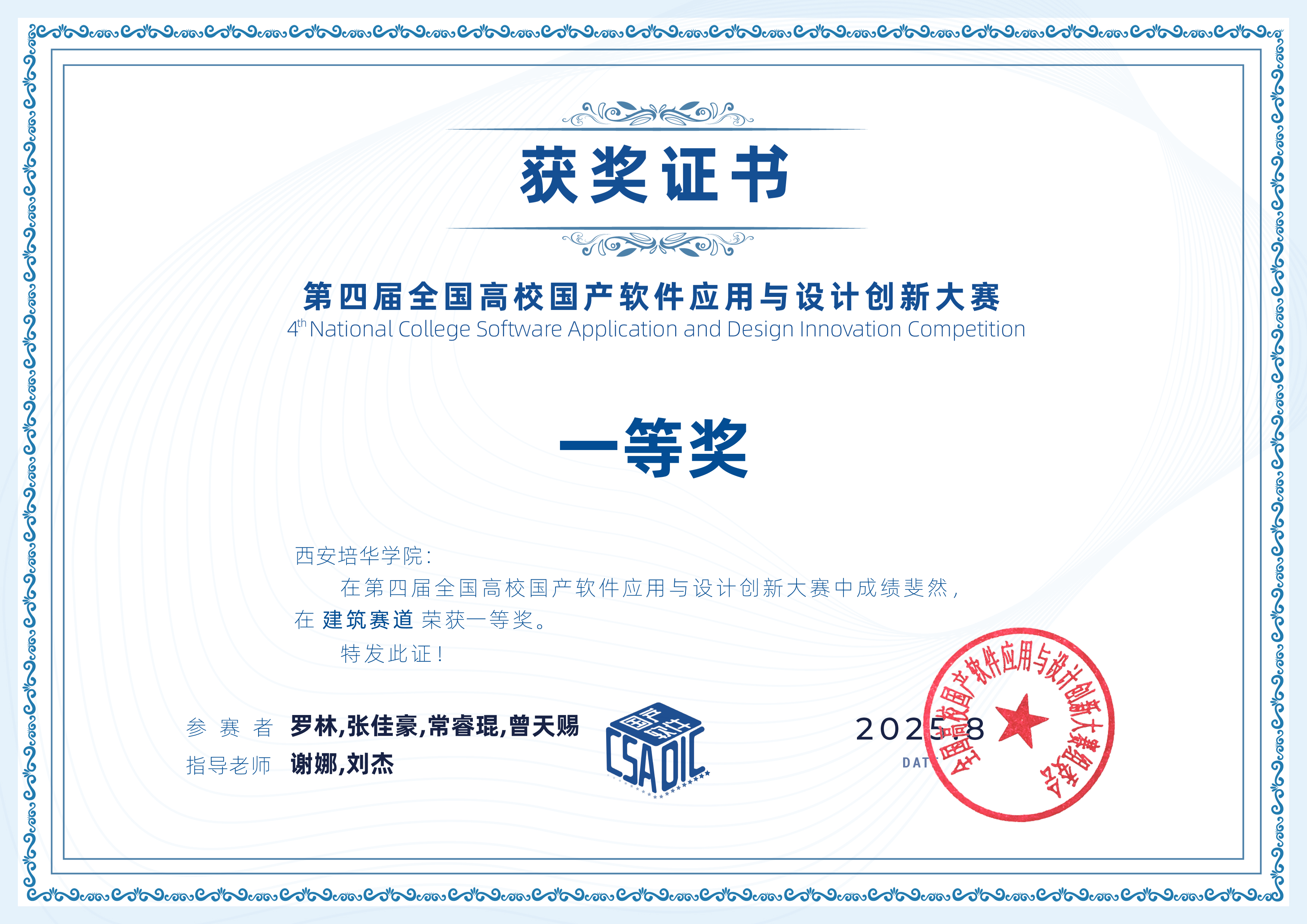 总决赛中,培华队伍凭借扎实的专业能力和出色的现场发挥获得评委一致好评。罗林、张佳豪、常睿琨、曾天赐团队以模型深化设计精准、招标响应全面、创新思路清晰,勇夺一等奖(全国总分第一),茹英伟、刘宇寒、罗平洲队伍和王博洋、刘月婵、刘小川、汪星宇、杨浩雯获三等奖。