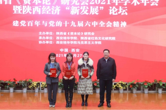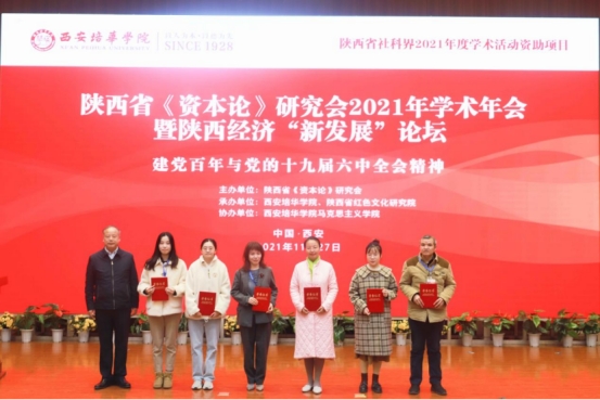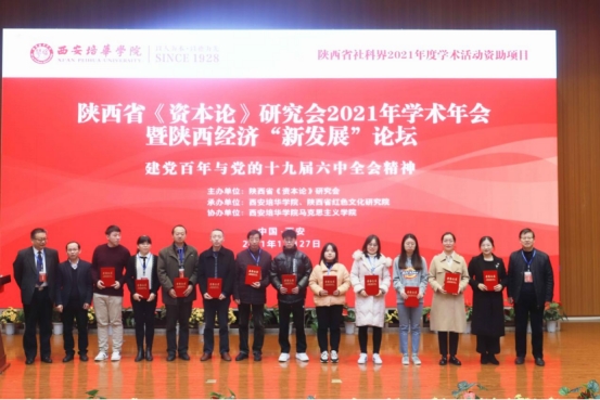 11月27日,陕西省《资本论》研究会2021年学术年会暨陕西经济“新发展”论坛在西安培华学院图书馆报告厅举办。本次学术年会由陕西省《资本论》研究会主办,西安培华学院、陕西省红色文化研究院承办,西安培华学院马克思主义学院协办。来自西安交通大学、陕西师范大学、西北工业大学、西北大学、西北农林科技大学、西安石油大学、西安工业大学、西安财经大学、西安科技大学、中共陕西省委党校、陕西省社科院等单位50余名专家学者以及学校马克思主义学院全体教师参加了此次会议。开幕式和颁奖环节由陕西省《资本论》研究会副会长、西北工业大学胡红安教授主持。