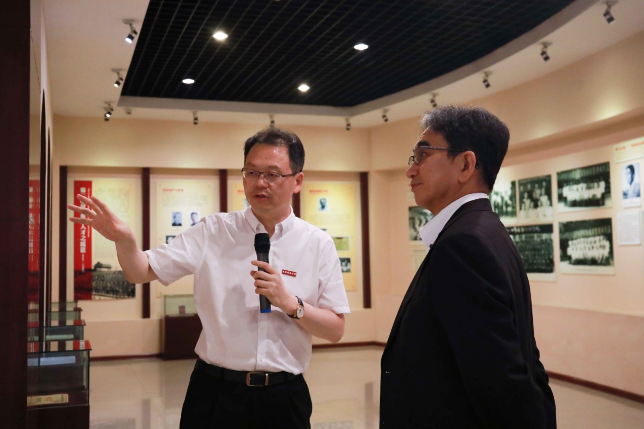 会议结束后,日本驻华大使垂秀夫先生及日本驻华大使馆各位公使在理事长姜波的陪同下参观了学校的维之图书馆和培华校史馆。