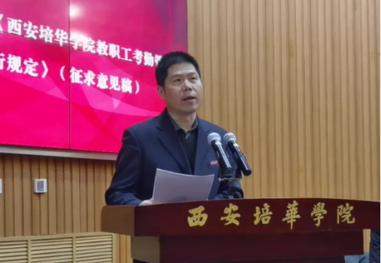 人力资源中心主任罗北荣宣读《西安培华学院教职工考勤管理暂行规定》