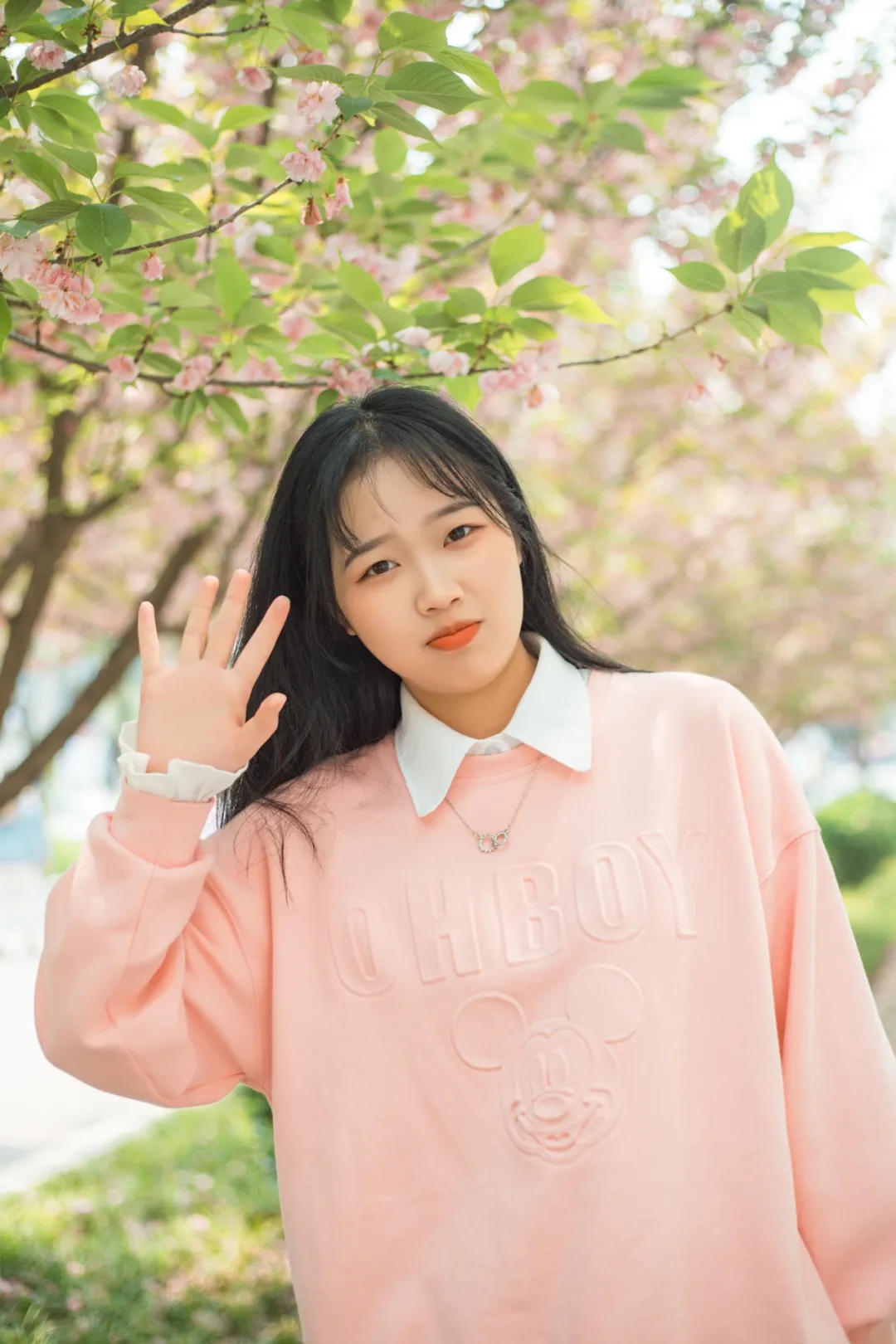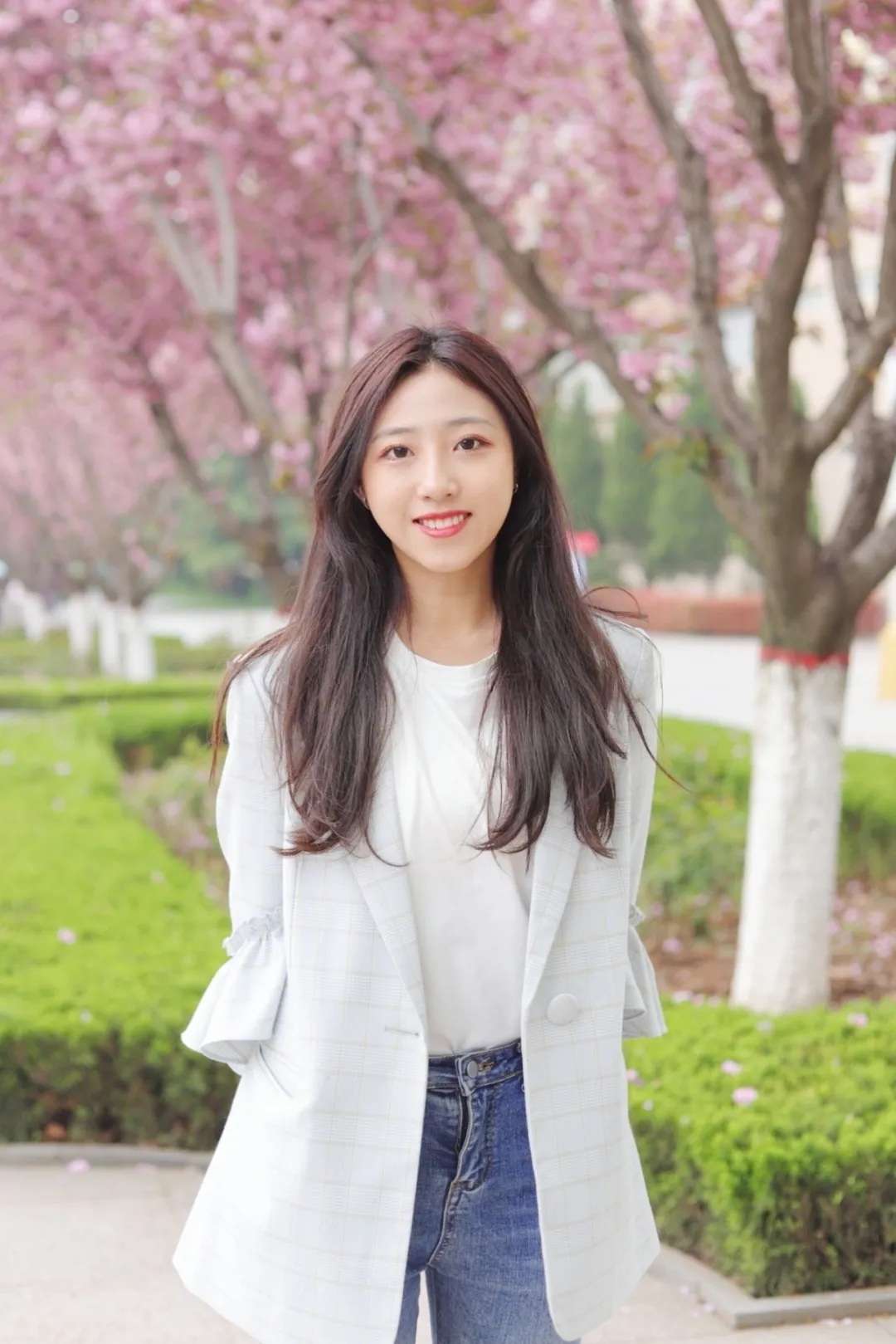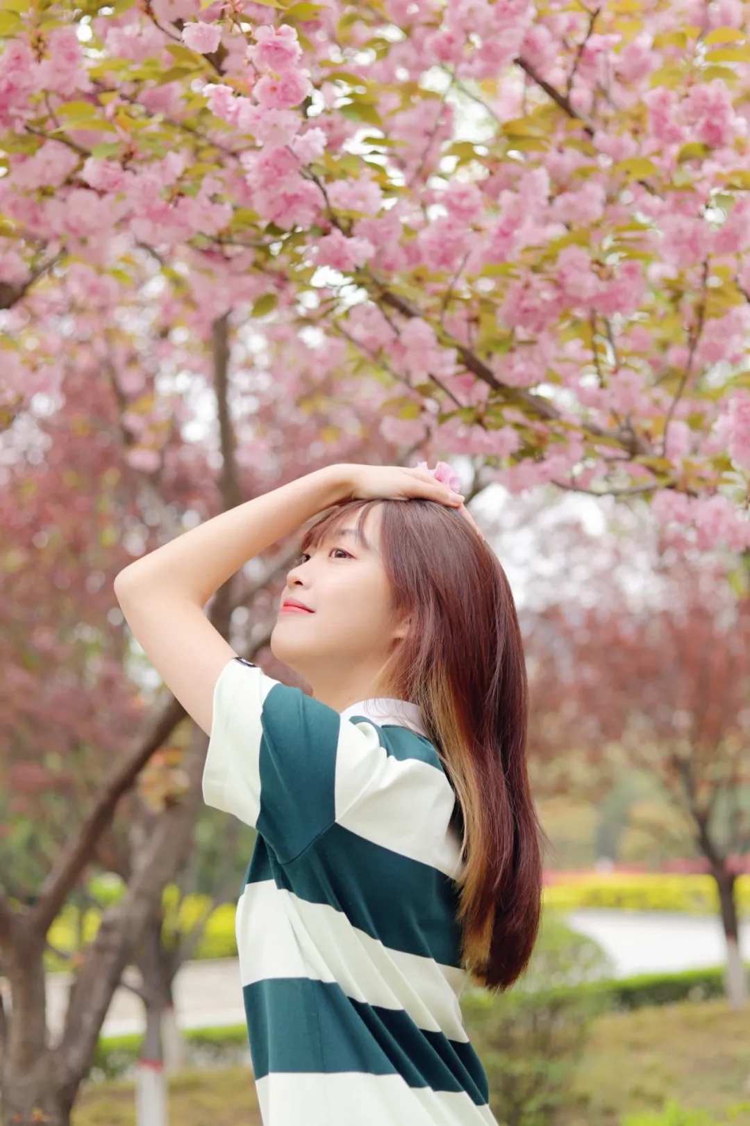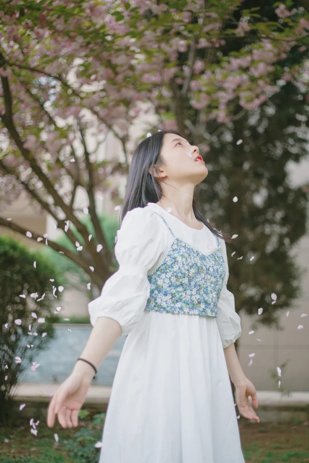 沿着10号宿舍楼前的道路上走,抬头望去有“樱花隧道”的感觉,繁花锦簇,春风拂来,粉色的樱花雨飘然落下,百米长的小巷僻静美好。花虽悄然落下,但你和樱花合拍的美好却常在。