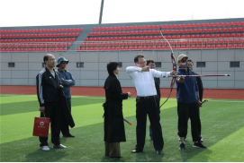 4月8日下午,西安培华学院理事长姜波,监事会主席、校党委副书记兼校体育委员会主任徐国富,体育学院院长王志强,副院长、党支部书记马德厚一行赴陕西省射击射箭运动管理中心西安市长安区常宁生态训练基地参观调研。在陕西省射运管理中心主任高文辉,副主任敖利志等人的陪同下,姜波理事长一行人参观了新落成使用的射运管理中心训练场馆及设施建设,并亲自体验了射击射箭运动项目。