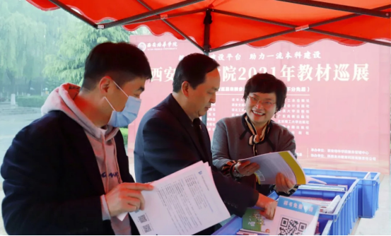 4月21日,学校举行2021年全国高校出版社教材巡展活动,高等教育出版社、北京大学出版社、复旦大学出版社、人民大学出版社、机械工业出版社、清华大学出版社、外语教学与研究出版社等20余家出版单位前来参展,带来近几年出版的最新优秀教材、规划教材、精品教材及配套教辅样书,内容丰富,涵盖了工学、理学、哲学、管理学、经济学、教育学、文学、艺术学等我校各专业需要的教材,吸引了众多师生参与,教师选中的样书通过扫码填表免费赠送。展出期间,学校常务副校长胡俊生、教务管理中心主任铁卫到展会现场了解巡展活动开展情况。