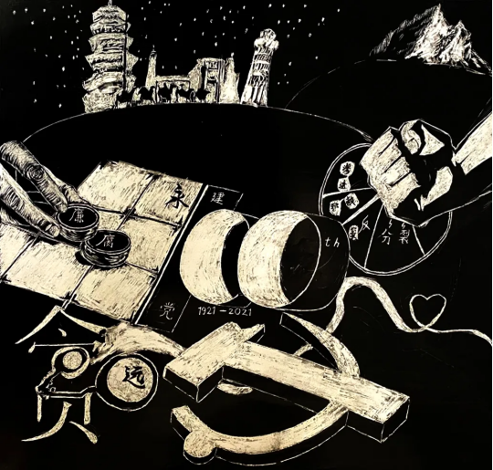 为庆祝中国共产党成立100周年,深入学习贯彻习近平总书记在党史学习教育动员大会上的重要讲话精神,落实省委、省委教育工委工作要求,扎实开展党史学习教育。培华建筑与艺术设计学院师生积极开展以党史学习教育为主题的黑白墨刻画创作活动,作品分别以红军长征、解放战争、红船精神、航天精神及党的艰辛历程等为题材,在一幅幅刷墨的卡纸上依据稿图用刻刀刻出黑白对比强烈、明快、朴素的图案,重温党的百年峥嵘岁月,书画出对伟大祖国的美好祝愿和对新时代美好生活的向往与追求。