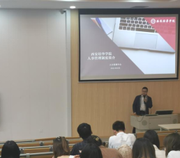 5月6日下午,图文信息中心数据管理员胡博为新入职教职工介绍了学校信息化建设及系统平台的相关信息。他从图文与信息技术中心的发展历程开始讲起,分别介绍了图文中心的部门职责、信息化发展历程以及数字化基础建设等有关内容。人力资源中心主管田沛为新入职教职工解读了学校的人事管理相关制度。
