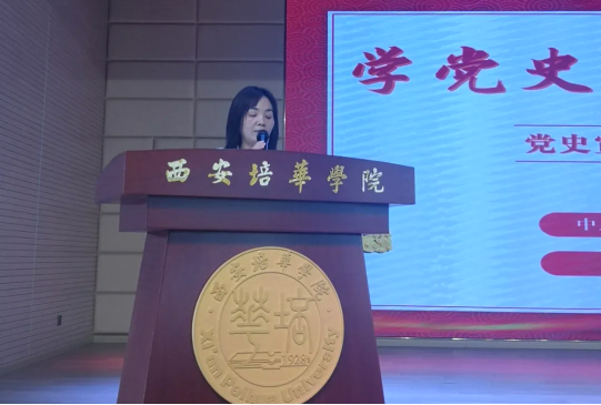 王曲街道光明路社区党员王浩浩、刘诚和人文与国际教育学院学生党员李思琛、方妍为大家讲述党史,重温党的百年风雨征程。