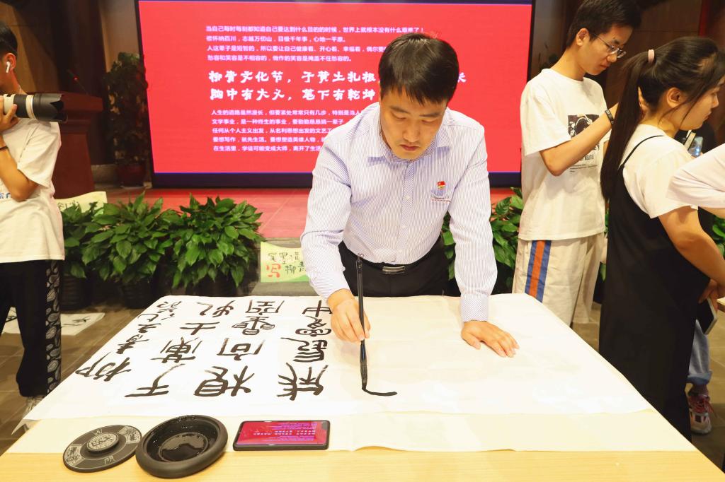 茂林书画协会成员代表临摹书写柳青经典名句,现场挥毫,书写柳青文化。他们行云流水,一气呵成。培华师生在笔墨纸砚中去体会中华文化的独特魅力。