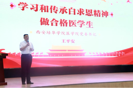 医学院党委书记兼行政副院长王平安作了动员讲话,他希望同学们珍惜实习机会,遵守临床医院、科室的规章制度,同时从坚定理想信念/学习和传承白求恩精神等方面向同学们提出相关要求及殷切希望。最后,王院长预祝大家实习顺利,保持学医的初心,肩负学医的使命。