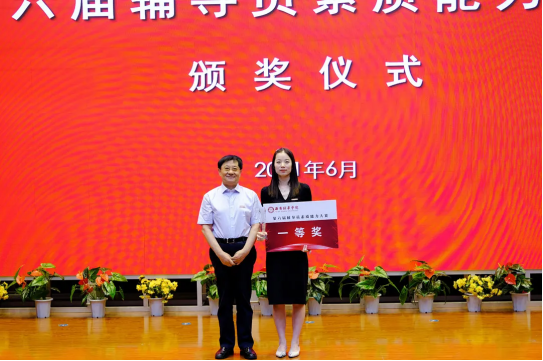 最终,结合赛前进行的前两个环节的比赛成绩,来自建筑与艺术设计学院的崔菲以86.30分荣获大赛一等奖,来自人文与国际教育学院的魏宇豆、医学院的罗海芸分别荣获二、三等奖,来自医学院的刘斌、冯莹、李莉、马肖,传媒学院的蔡蕊泽,会计与金融学院的胡景莲、魏浩亮,人文与国际教育学院的吕园,智能科学与信息工程学院的高珊珊共9名辅导员荣获优秀奖,与会领导为获奖辅导员颁发了奖杯和荣誉证书。