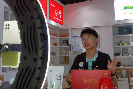 ——做调研访谈,体会电商直播带货。以茶待客是传承几千年的礼仪,“青年观察家”们结合专业基础及特长,走访紫阳县多个茶叶交易市场、电商服务中心、文化广场和附近村镇,与普通市民和茶商进行了深入的交流和调研,了解当地茶产营销、茶文化展示、茶生活体验等情况,发放问卷2000余份,访谈百余人,通过调研访谈,得知,紫阳特色产业发展迅速,人民生活水平逐渐提高,幸福感逐渐增强。“青年观察家”们在工作人员的指导下体验了直播带货,以大学生视角对紫阳特色富硒茶、紫阳特色农产品进行线上宣传推广,完成了实践调研任务,得到了当地政府、市民、茶商的一致好评。