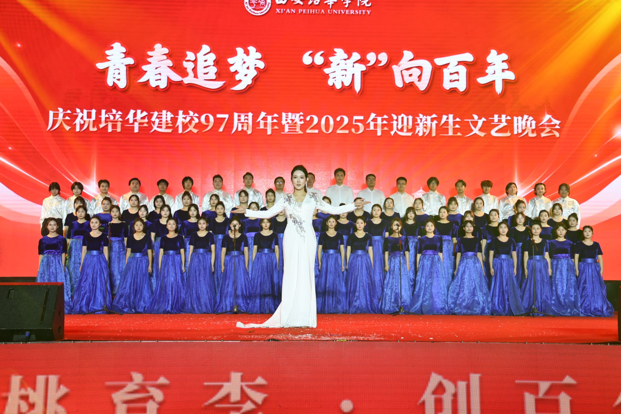 晚会在2025级新生合唱的《保卫黄河》与《培华之歌》中圆满落幕。嘹亮的歌声与磅礴的气势,既展现了百年培华的深厚底蕴,更凸显了新一代学子接续奋斗的担当,奏响了培华迈向百年新征程的奋进乐章。本篇章通过艺术与精神的双重演绎,生动诠释了“教育强国,培华有为”的使命担当。