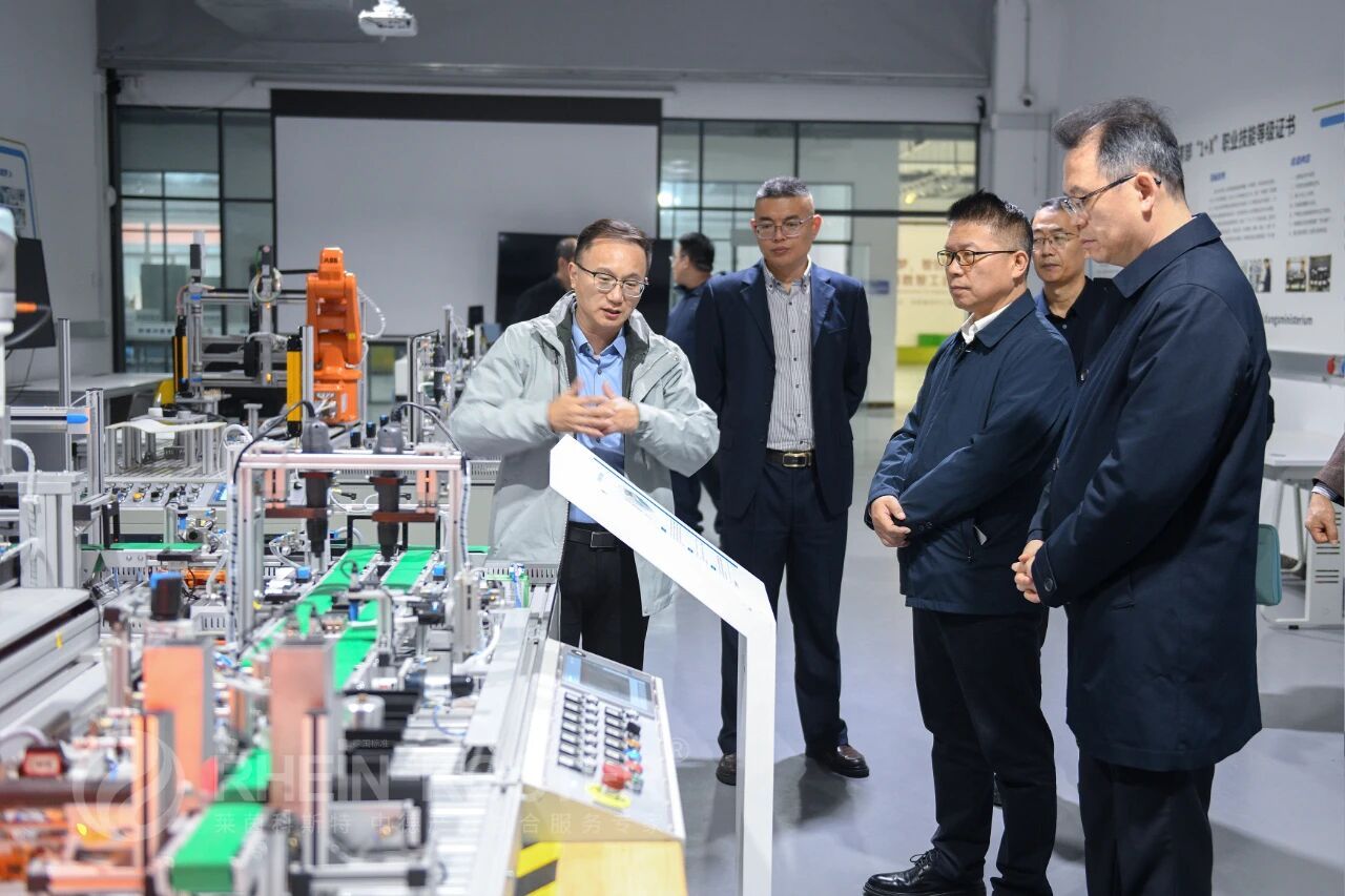 10月25日,西安培华学院理事长姜波、校长助理秦海锋、智能科学与工程学院院长王文庆及院长助理陈文利,同西安德尖教育科技有限公司董事长赵文杰等一行5人赴莱茵科斯特集团“国家级产教融合示范(淄博)基地”考察。莱茵科斯特董事长崔智、培训师学院院长胡鹏昌、西安公司总经理刘明辉等领导热情接待,并全程陪同参观及座谈。