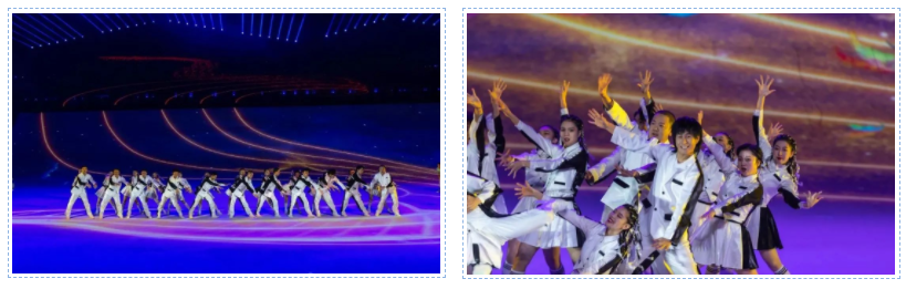 在开幕式的舞台上,学校286名学生演员充满活力、精神焕发、积极向上,为全国观众奉献了一场精彩的演出: